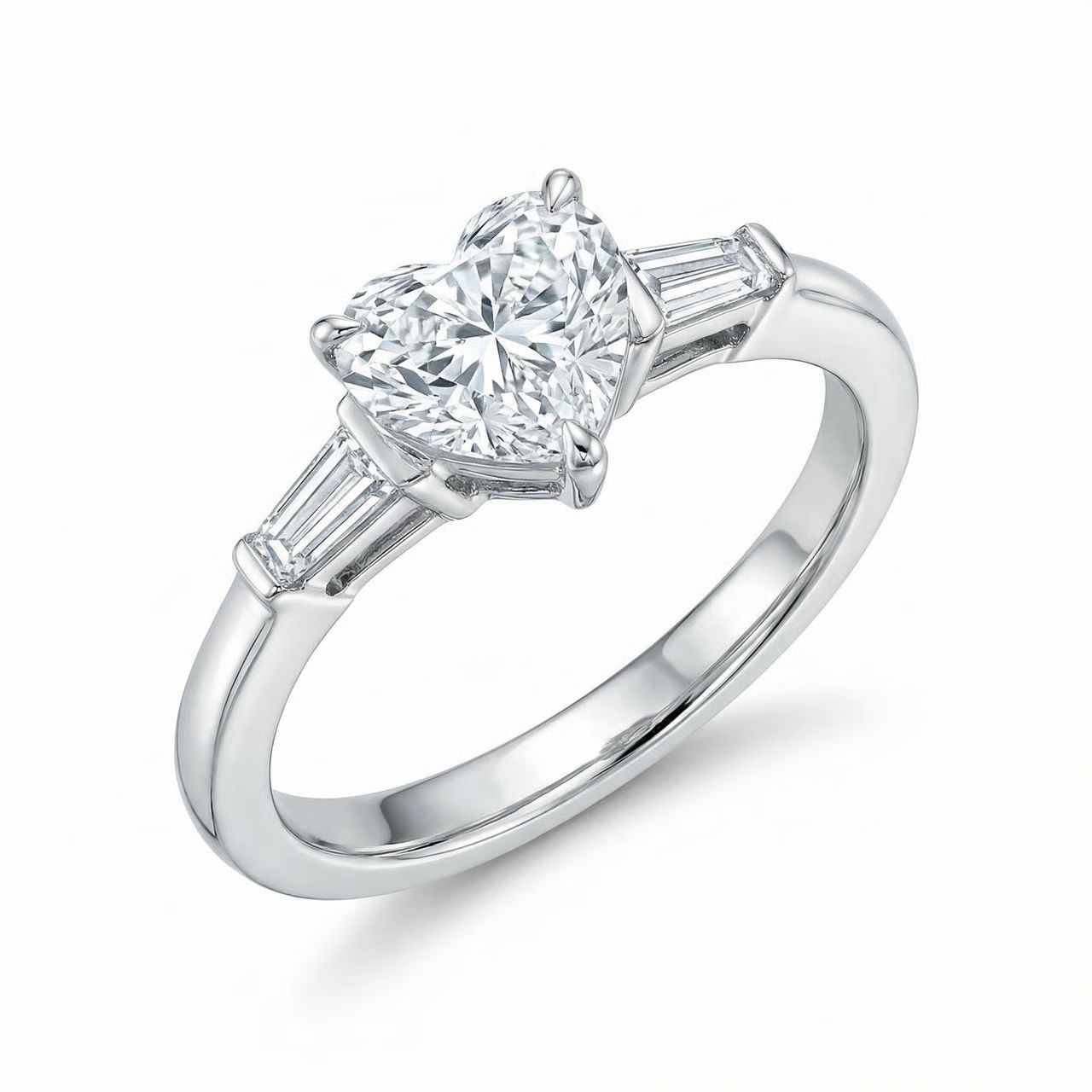 Този впечатляващ годежен пръстен от бяло злато със сърцевиден лабораторно създаден диамант е силно емоционално бижу със смисъл и характер. Централният диамант с форма сърце е прецизно фасетиран, за да постигне максимален блясък и ясно изразена симетрия – форма, която директно символизира любов, отдаденост и дълбока връзка.