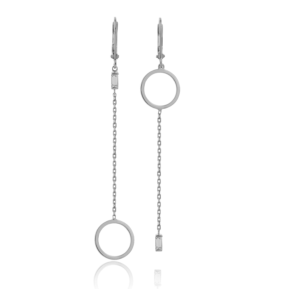 Изключително елегантните дълги висящи обеци от бяло злато 14К впечатляват със своя съвременен дизайн и изчистен лукс. Изработени от висококачествено бяло злато с прецизна полировка, те отразяват светлината с фин метален блясък, който подчертава красотата на лицето и шията.