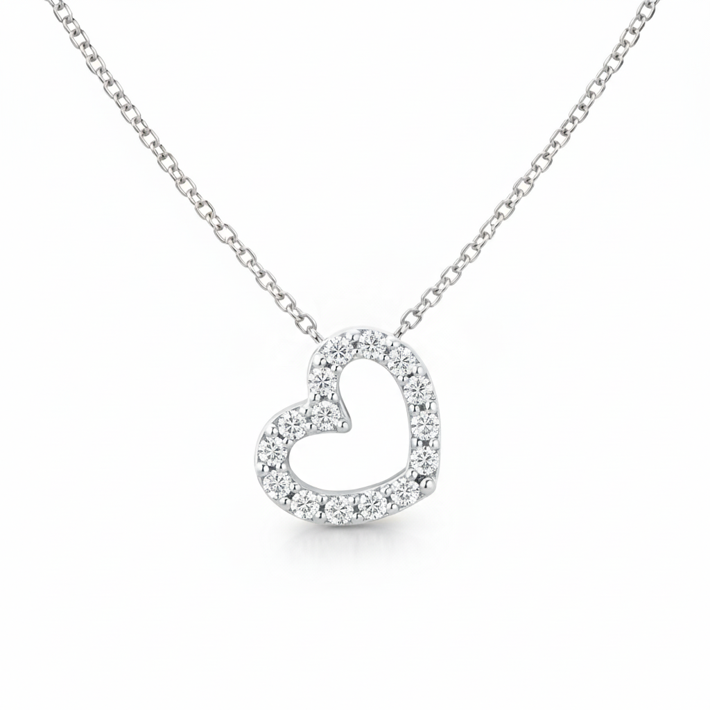 Колието се отличава с фина верижка от 14-каратово бяло злато, която служи за елегантна основа на основния акцент – малко, плътно сърце от розово злато. Дизайнът е минималистичен и изтънчен: сърцето е нанизано директно върху верижката, което създава усещане за лекота и модерен „chic“ стил. Розовото злато придава мекота и романтика, докато бялото злато добавя съвременен, луксозен завършек.