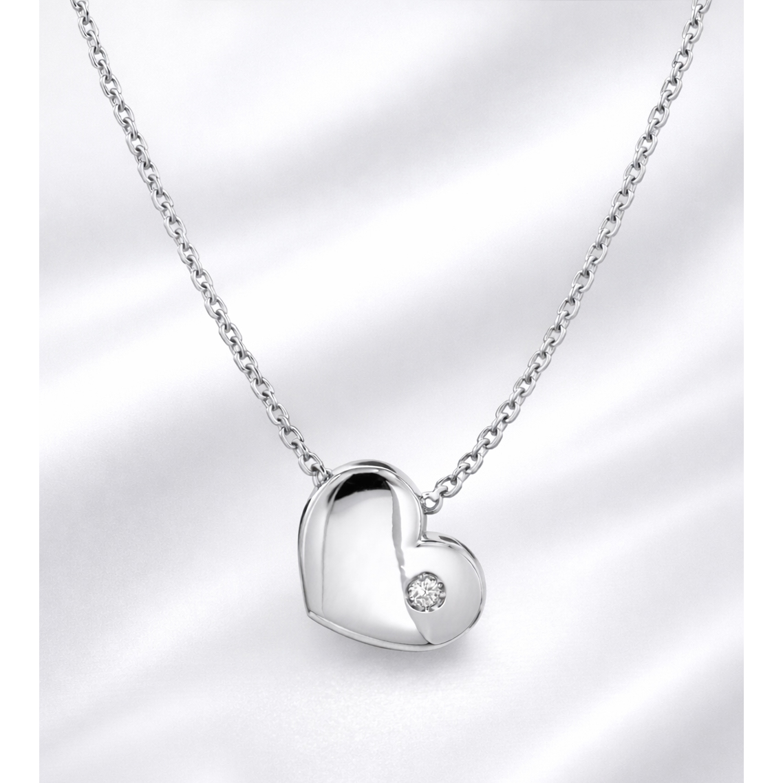 Изразете любовта си с това изящно колие от бяло злато 14 карата, което съчетава вечната символика на сърцето с модерна, минималистична естетика. Този модел е създаден за жената, която цени дискретния лукс и деликатните детайли.