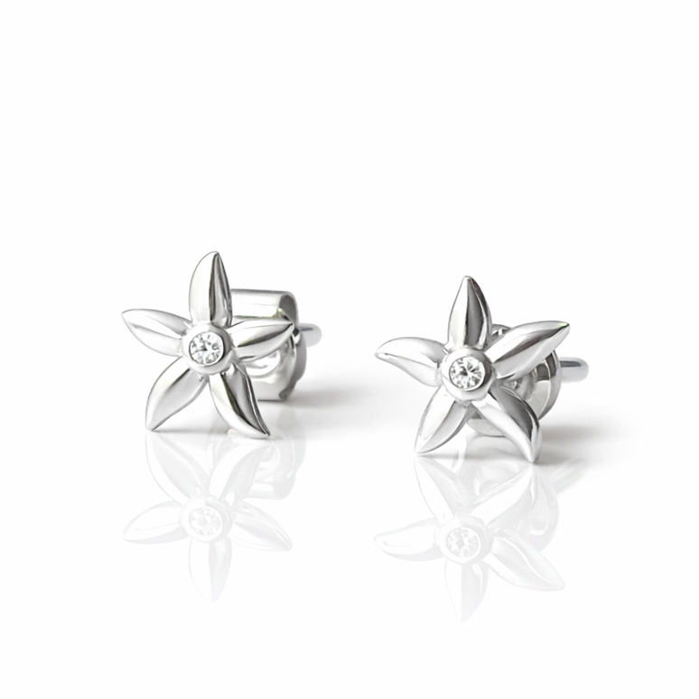 Обеци бяло злато звездички