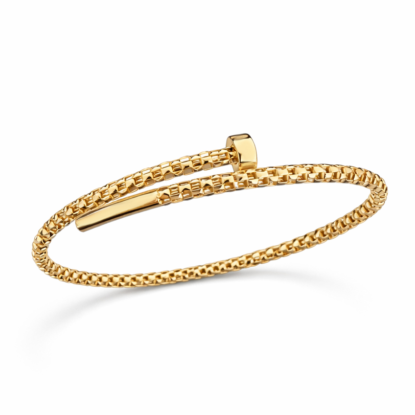Дамската златна гривна тип пирон от жълто злато Jasmine е модерно и елегантно бижу, което се отличава със своя оригинален и стилен дизайн. Тази дамска златна гривна е вдъхновена от популярния nail style модел, който придава съвременна визия и подчертава индивидуалността на всяка жена.