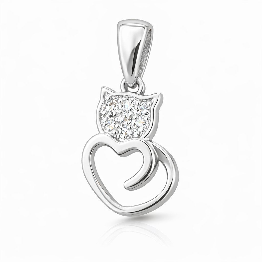 Бялото злато подчертава сиянието на камъните и създава съвременно излъчване, подходящо за ежедневна визия или специален повод. Котката символизира независимост и грация, а сърцето – любов и привързаност, което прави този модел идеален подарък със смисъл.