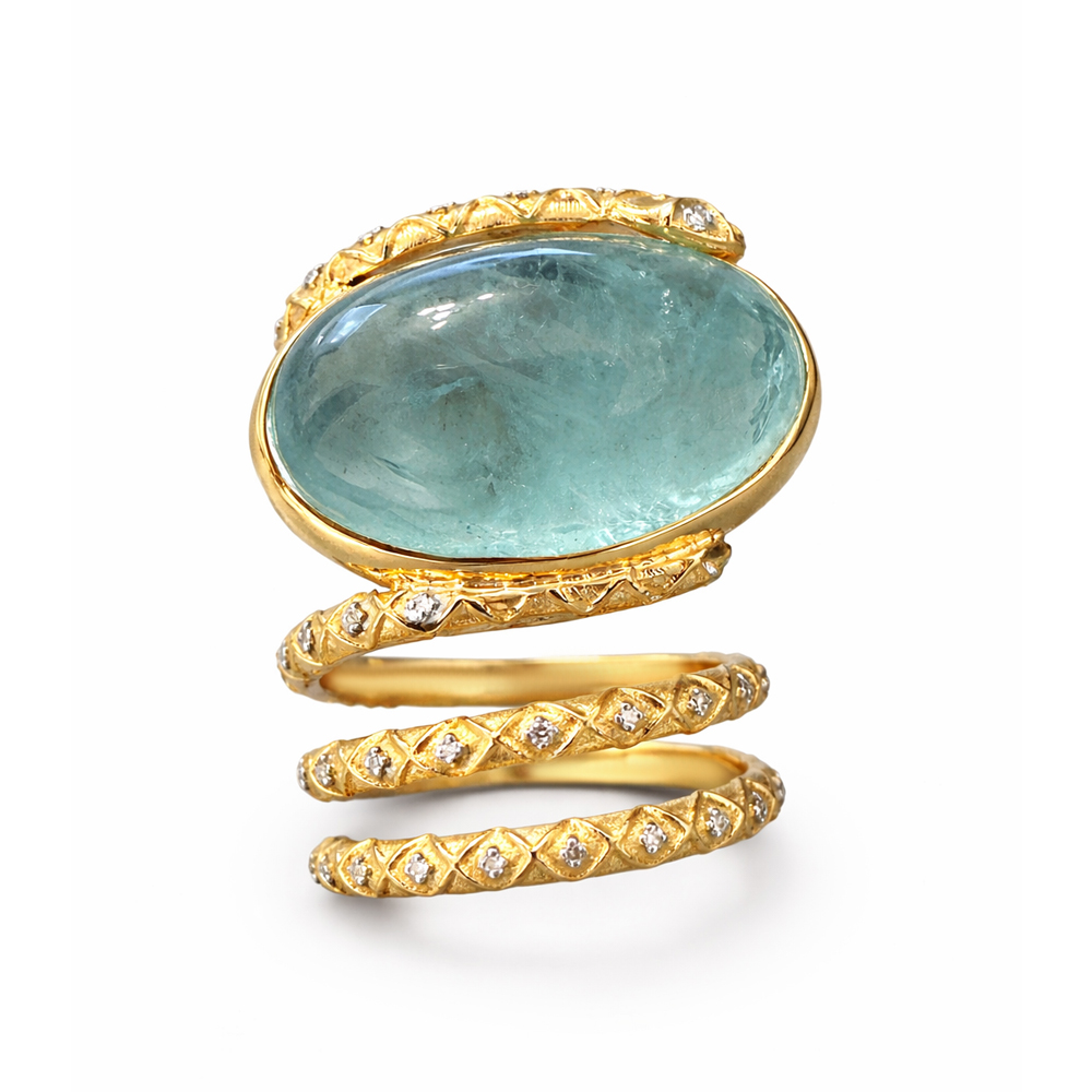 Златният пръстен SERPENTIA AQUAMARINE 18К е впечатляващо дизайнерско бижу, което съчетава артистичност, лукс и изразителен стил.