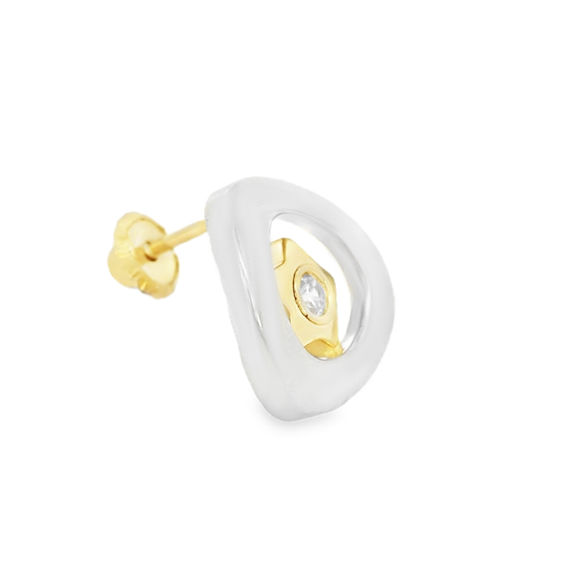 Тези изящни златни обици на винт съчетават класическата елегантност на бялото злато с топлия блясък на жълтото злато. В центъра е разположена нежна звезда, инкрустирана с блестящ циркон, символизираща светлина и женственост. Закопчаването на винт гарантира сигурност и комфорт при носене, което прави модела подходящ както за ежедневието, така и за специални поводи.